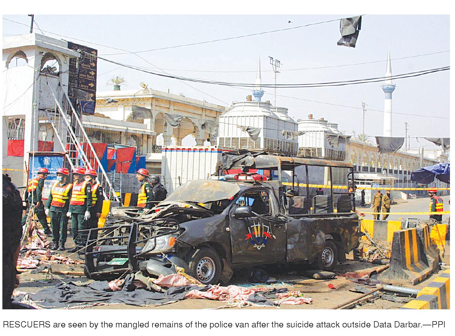 He said it was a targeted attack, explaining that the terrorists hit the police van parked outside the shrine. He said five Elite Force personnel were martyred in the blast while four others suf fered multiple injuries.