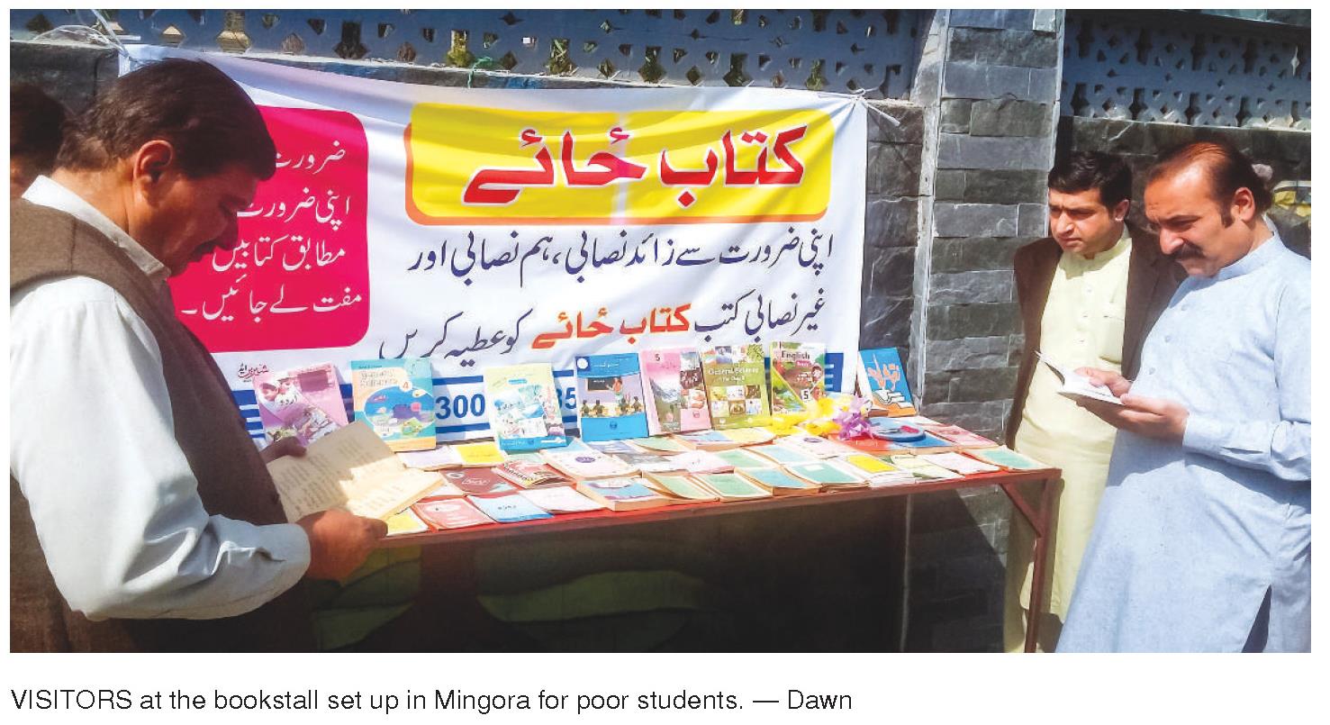 Under the `Kitab Zai` campaign, they`ve set up a stall near Swat Library on Said Sharif Road to distribute used books, both on curricular and extracurricular activities, to needy and poor students.