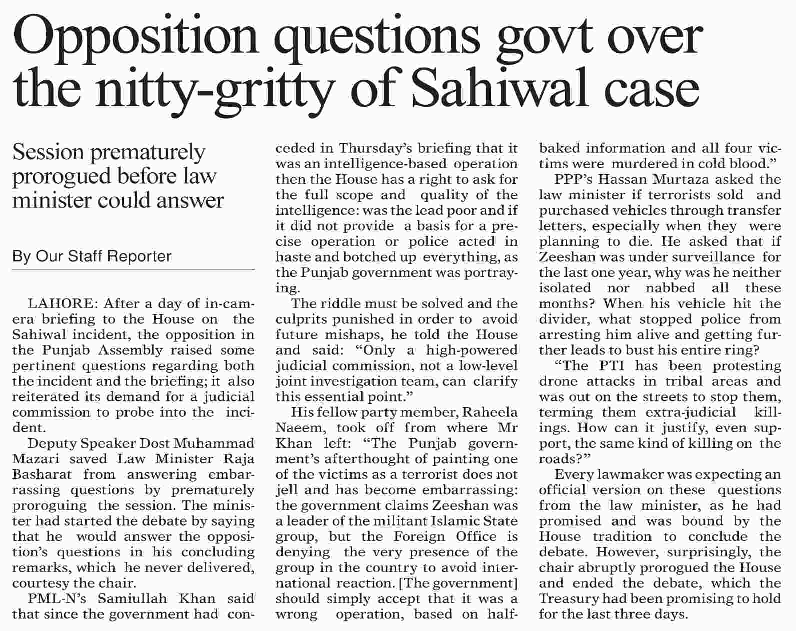 `Sahiwal incident has shaken Punjab